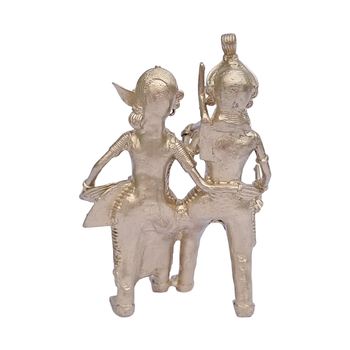 This Dhokra farmer couple sculpture also makes a thoughtful gift for housewarmings, festivals, weddings, or special occasions. It is an excellent choice for art lovers, collectors, and anyone who appreciates authentic handmade crafts. By choosing this product, you are not only bringing home a beautiful piece of art but also supporting tribal artisans and helping preserve a traditional craft passed down through generations.