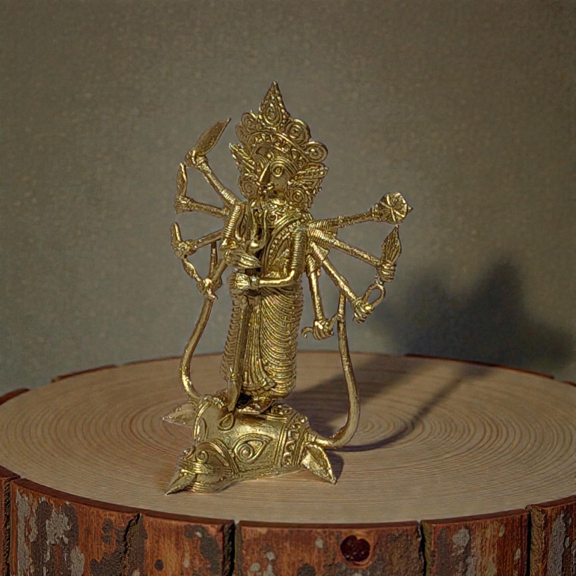 More than just a decorative artifact, this handcrafted Dhokra Durga statue is a celebration of India’s tribal artistry and cultural legacy—an heirloom piece that preserves tradition while adding spiritual elegance to your surroundings.