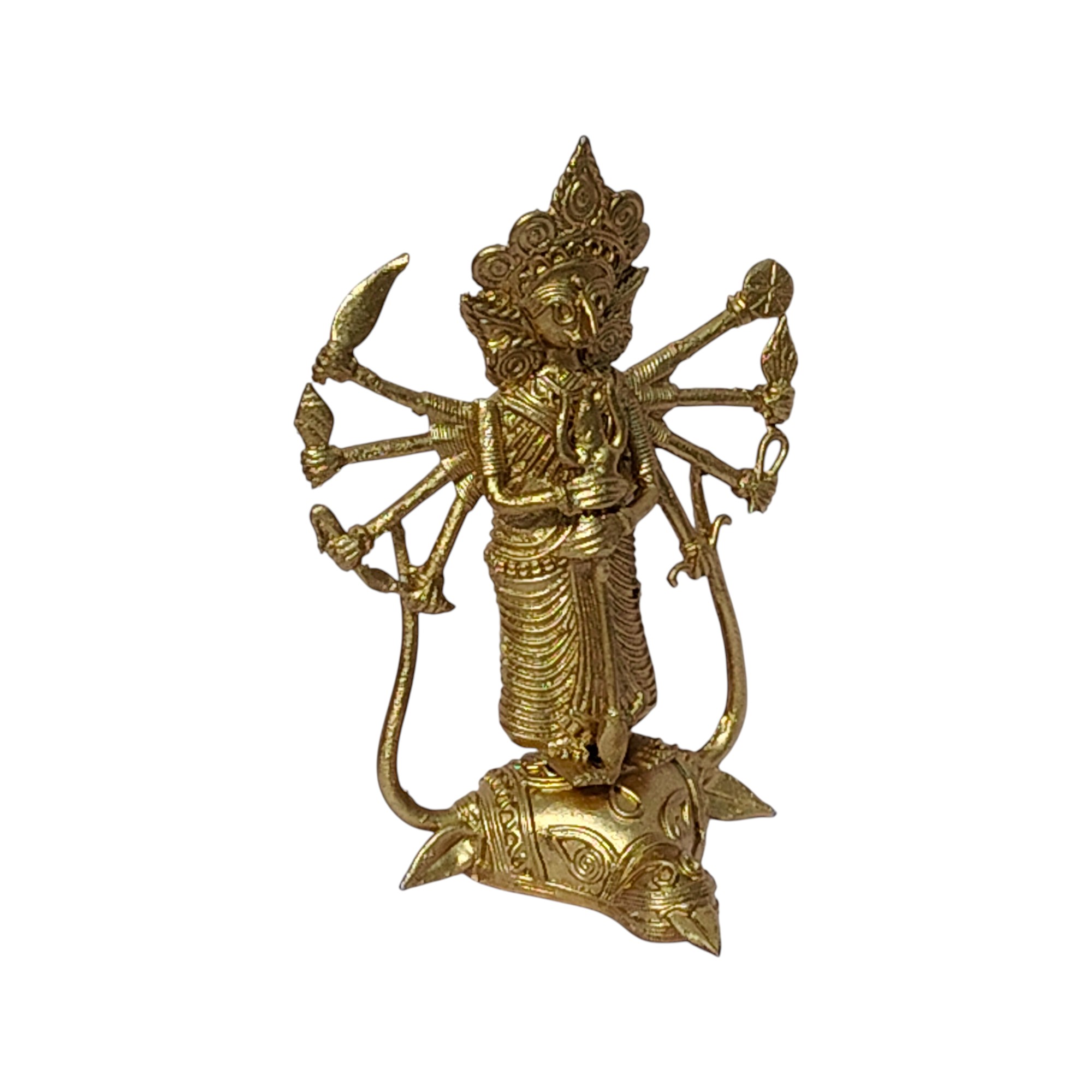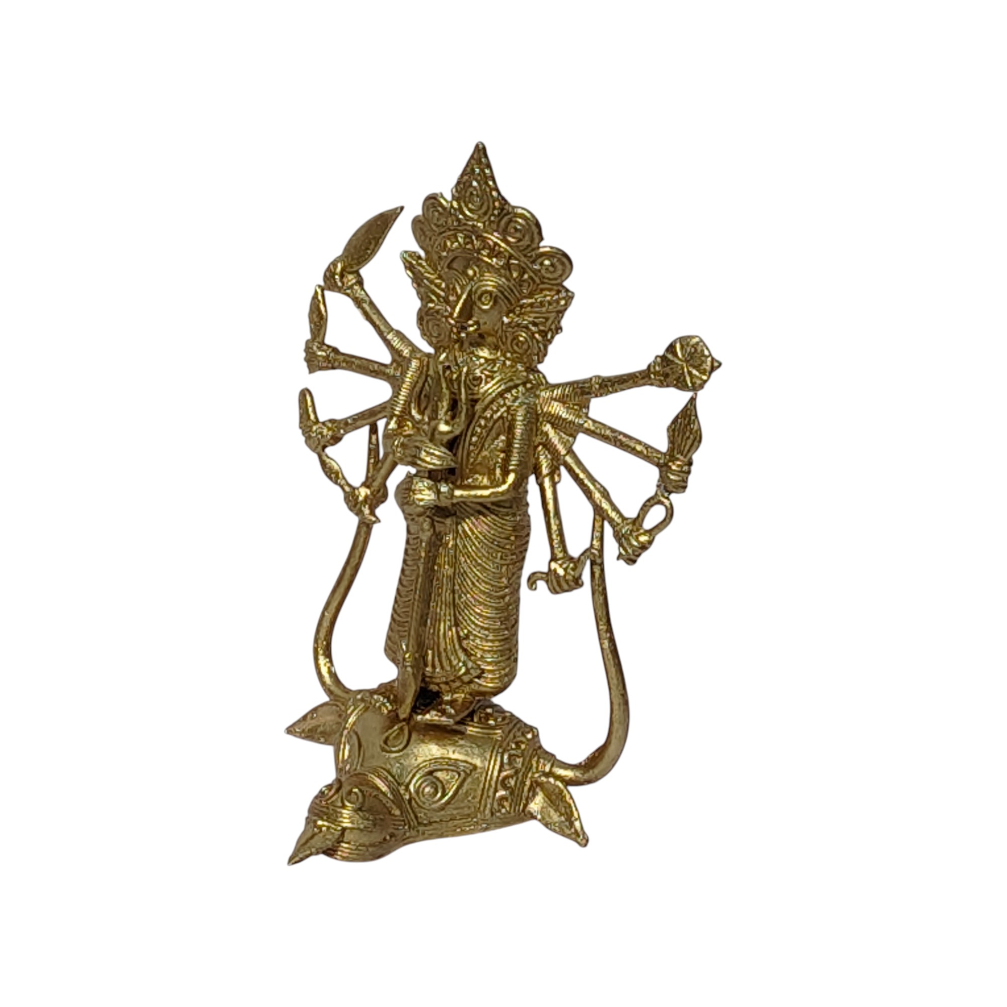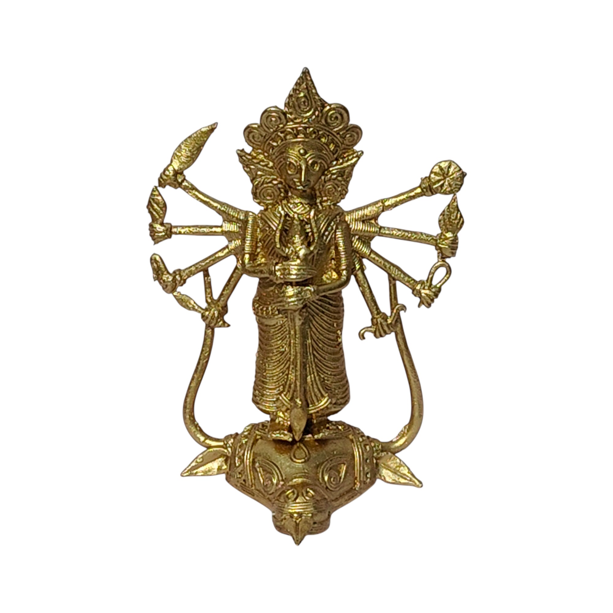 Celebrate the timeless power of divine femininity with this exquisite Dhokra Handcrafted Mahisasur Mardini Devi Durga Figure, a stunning representation of strength, protection, and victory of good over evil. Meticulously crafted using the ancient lost-wax casting technique, this brass masterpiece reflects the rich heritage of India’s traditional Dhokra tribal art, practiced for over 4,000 years.