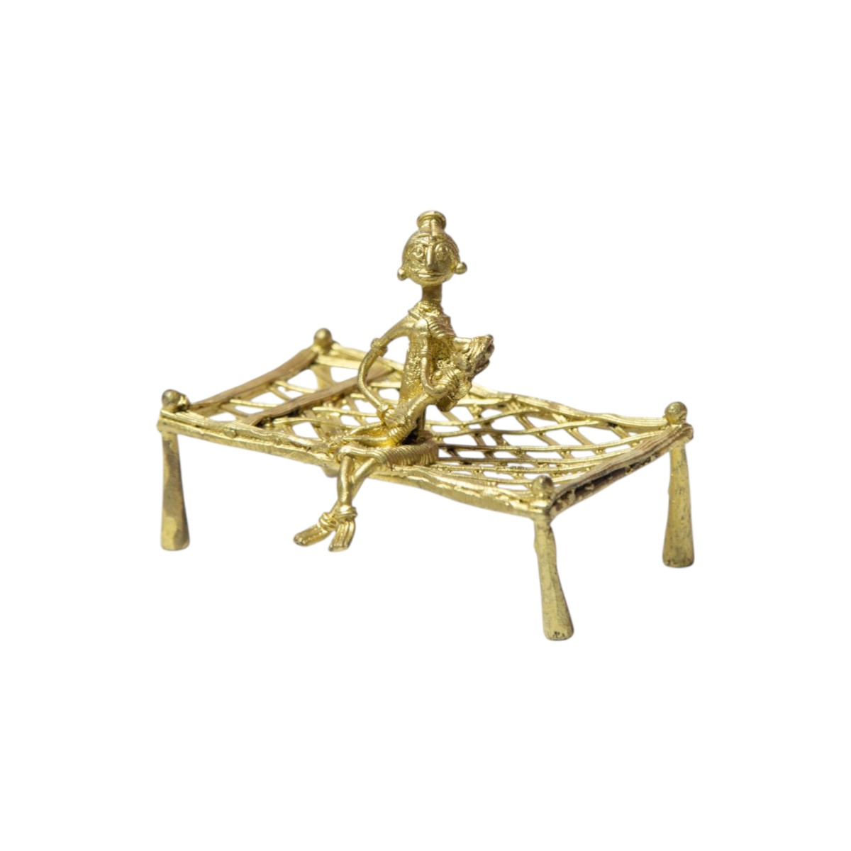 Handcrafted using the ancient lost-wax casting technique, this piece reflects the rich heritage of Dhokra art, a metalcraft tradition practiced by tribal artisans in India for centuries. Made from high-quality brass and finished in a natural antique gold tone, the sculpture features the distinctive elongated forms, minimalistic facial expressions, and fine textural detailing that define authentic Dhokra artistry.