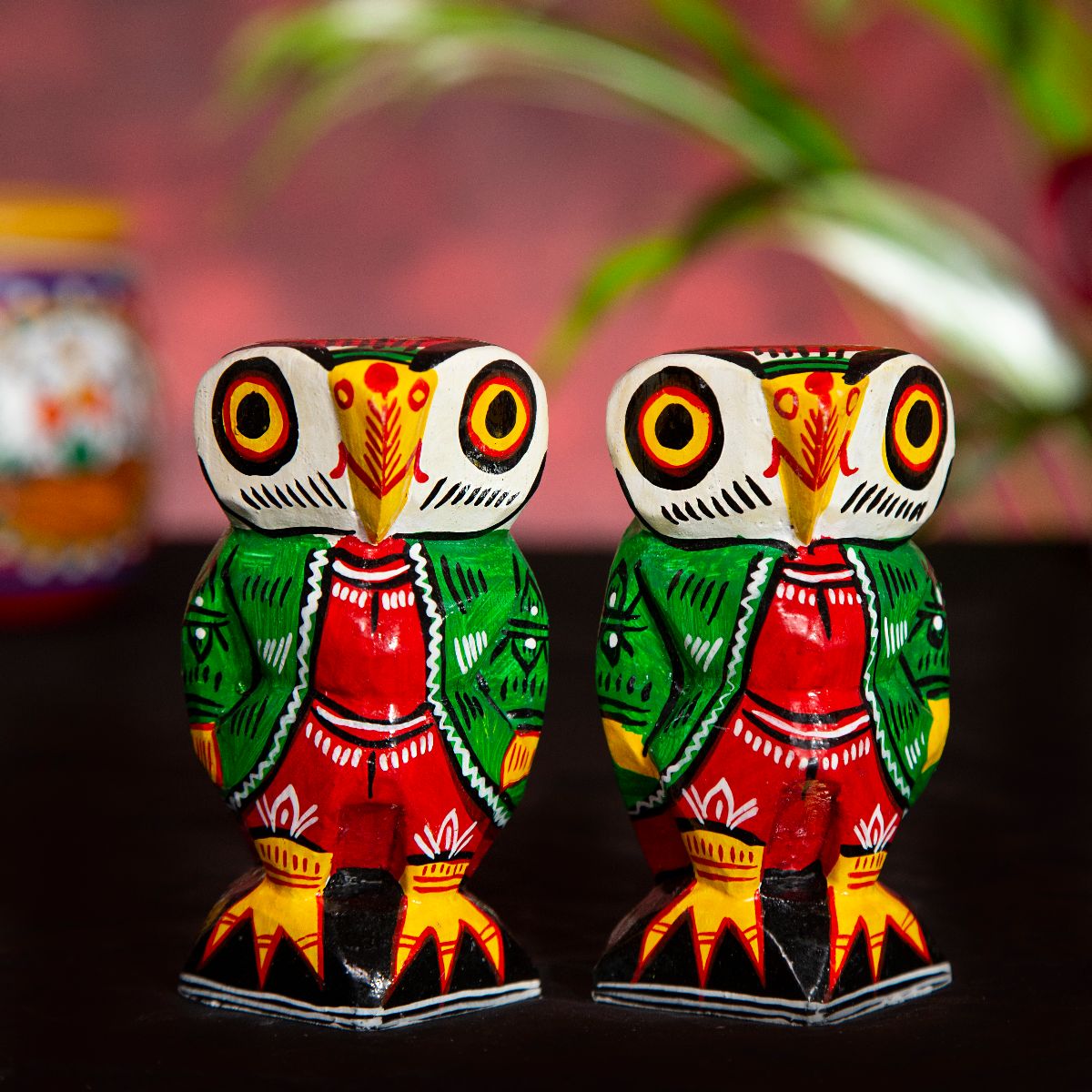 - Go Lucky Owl Couple Set Handmade Wooden Showpieces (Set of 2 Owls) – 4 Inches