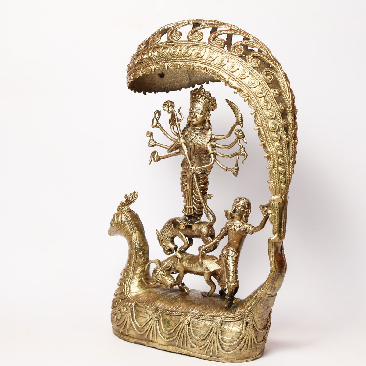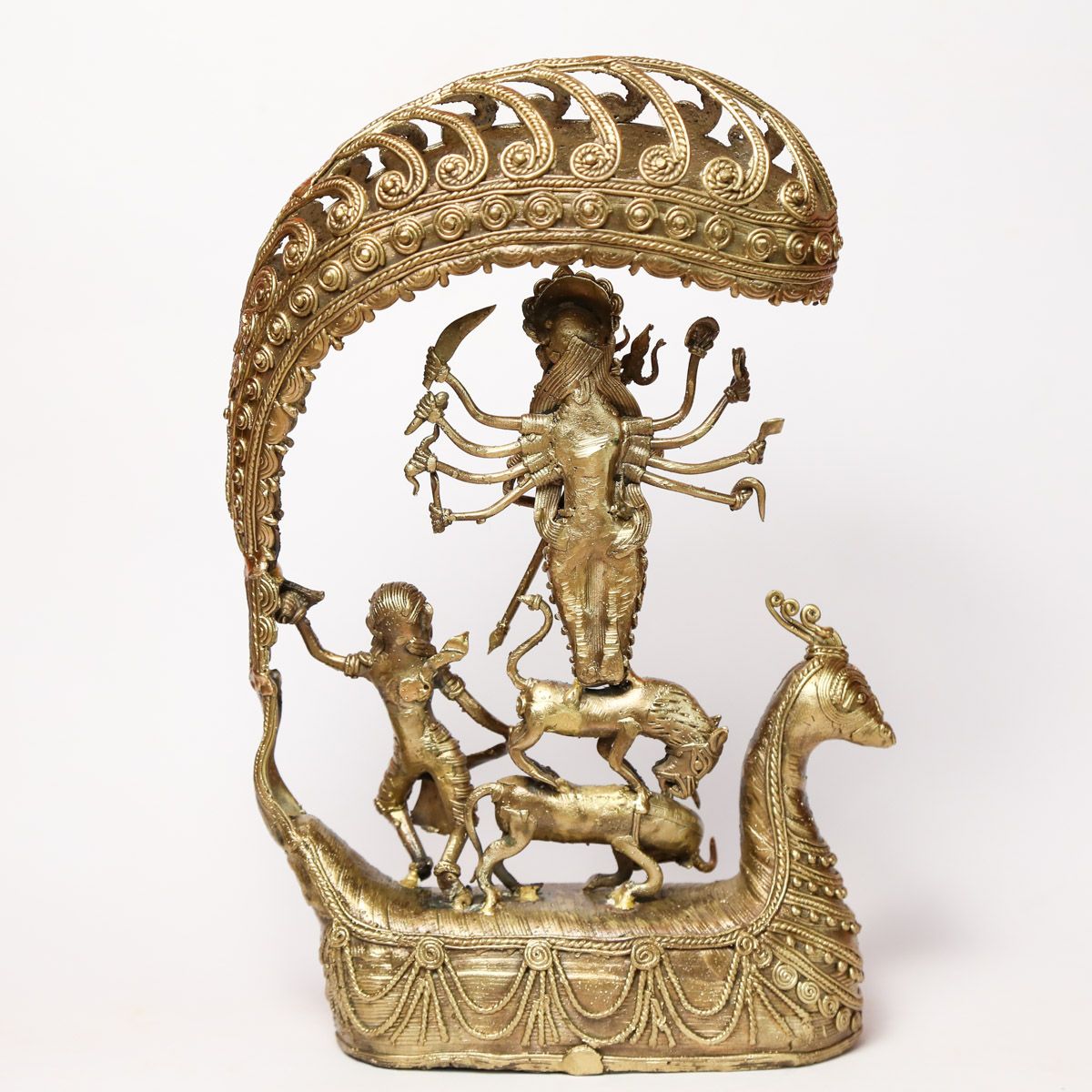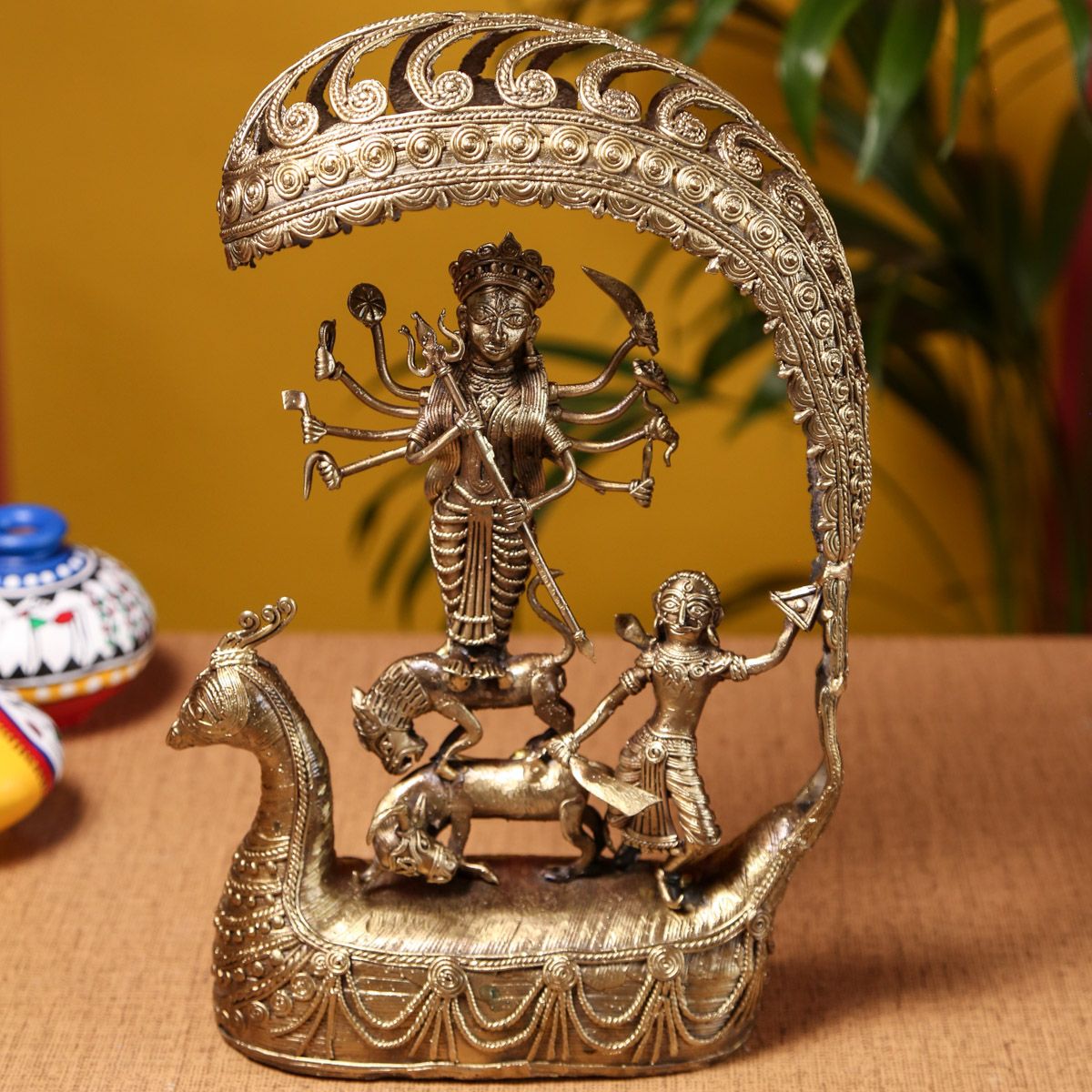 - Goddess Durga on Mor in Intricate Dhokra Art Form