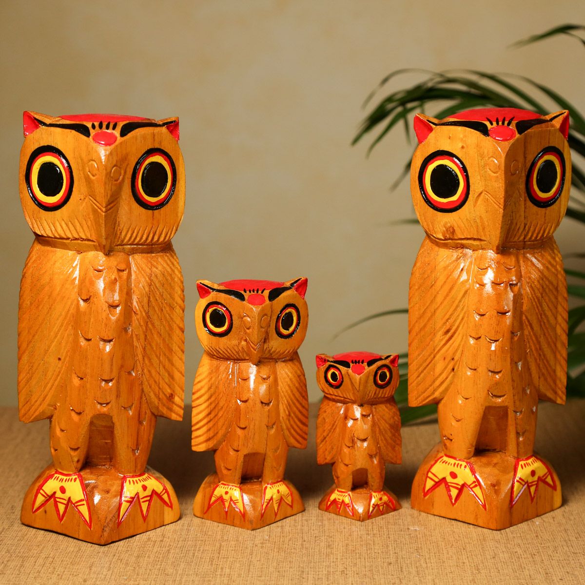 - Nighthawk Owl Family Wooden Handcurved Decorative Showpieces (Set of 4 Owls) – 10″-10″-6″-4″