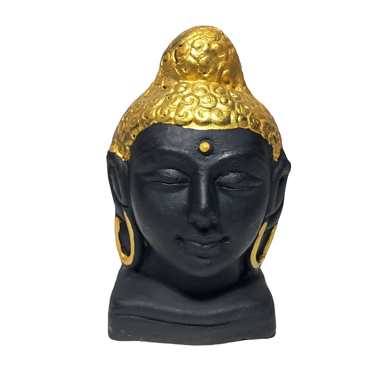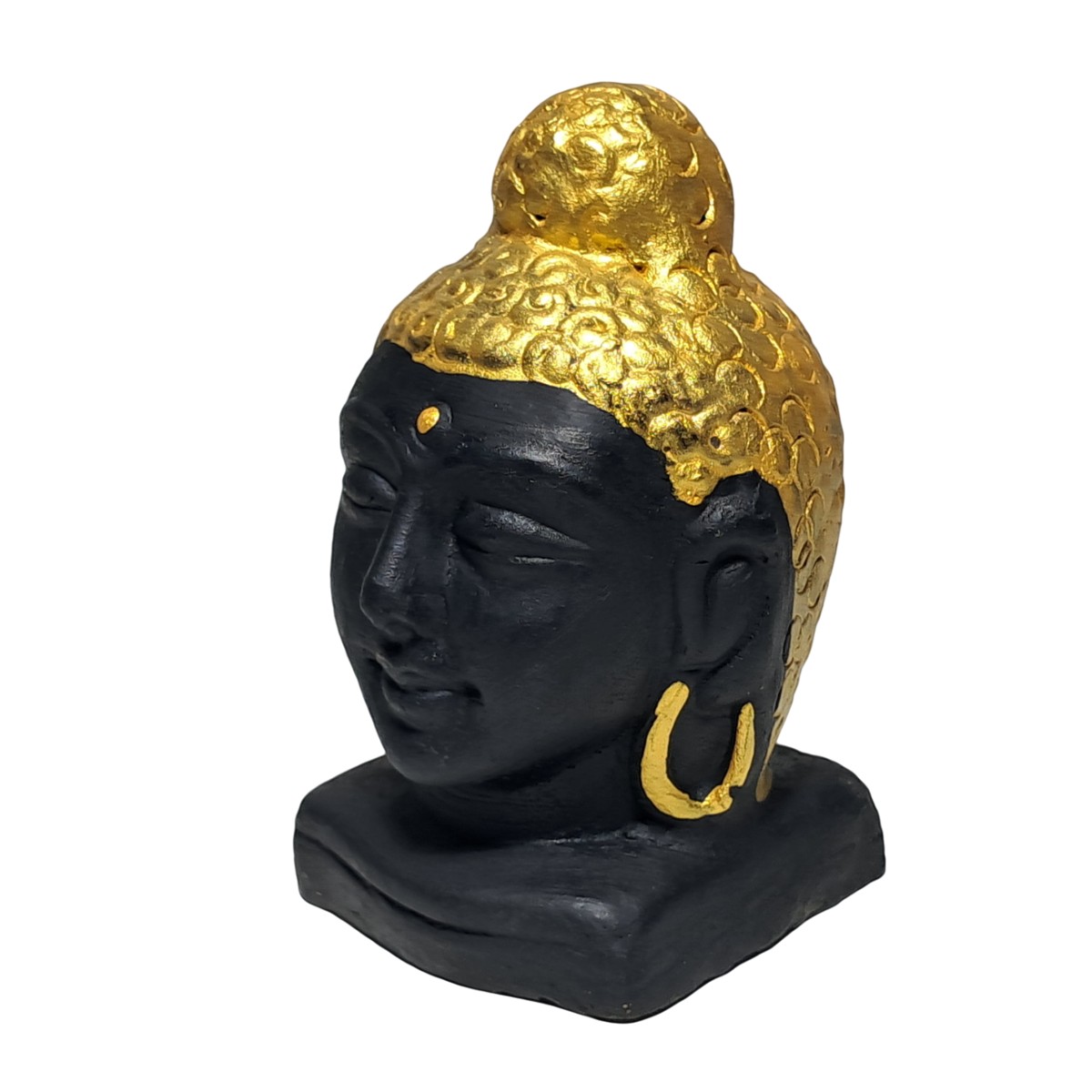 A handcrafted terracotta Buddha face, finished in elegant black with subtle hand-painted golden accents. Symbolizing peace, mindfulness, and inner harmony, this serene décor piece is ideal for meditation spaces, living rooms, offices, or gifting, adding a calm and spiritual touch to any interior.