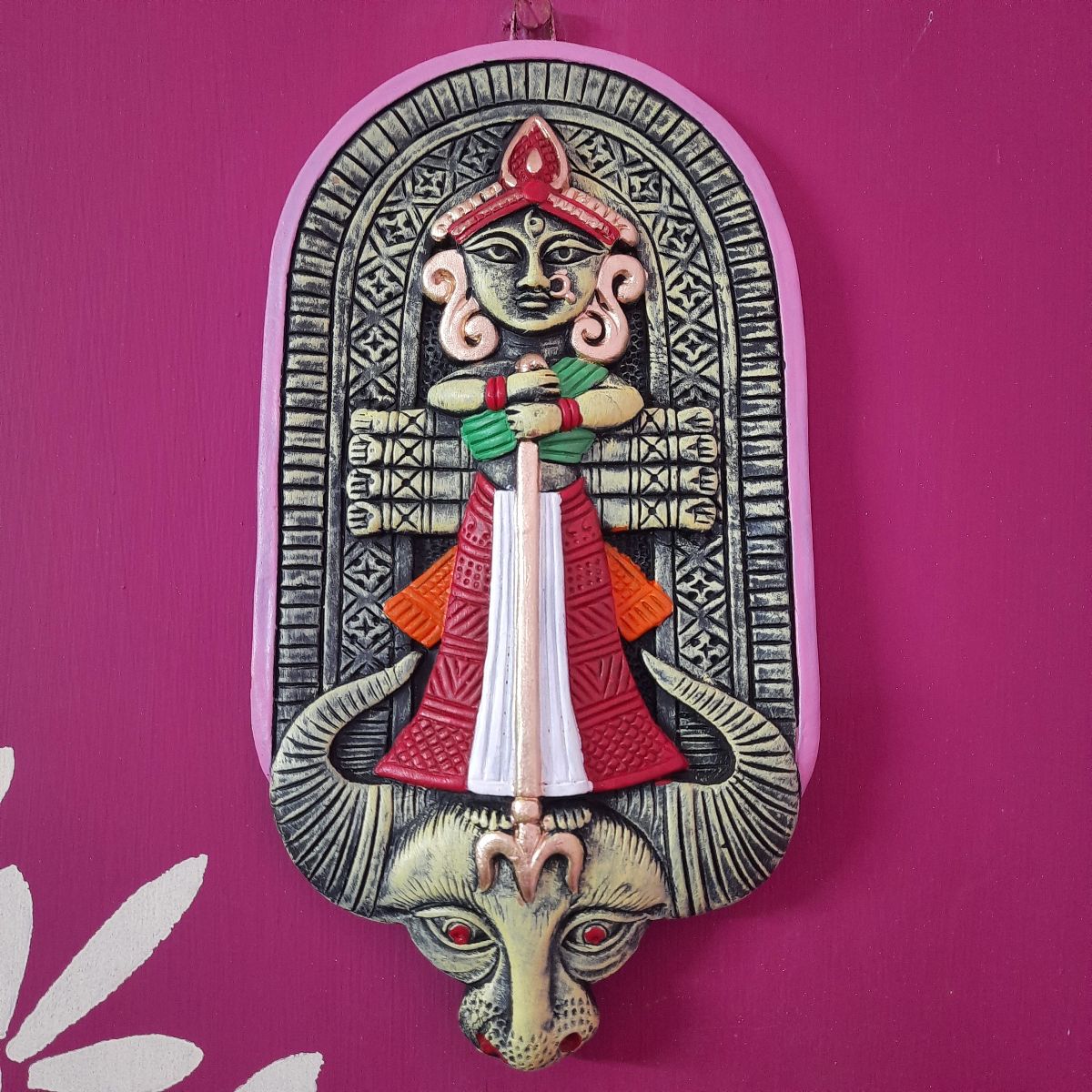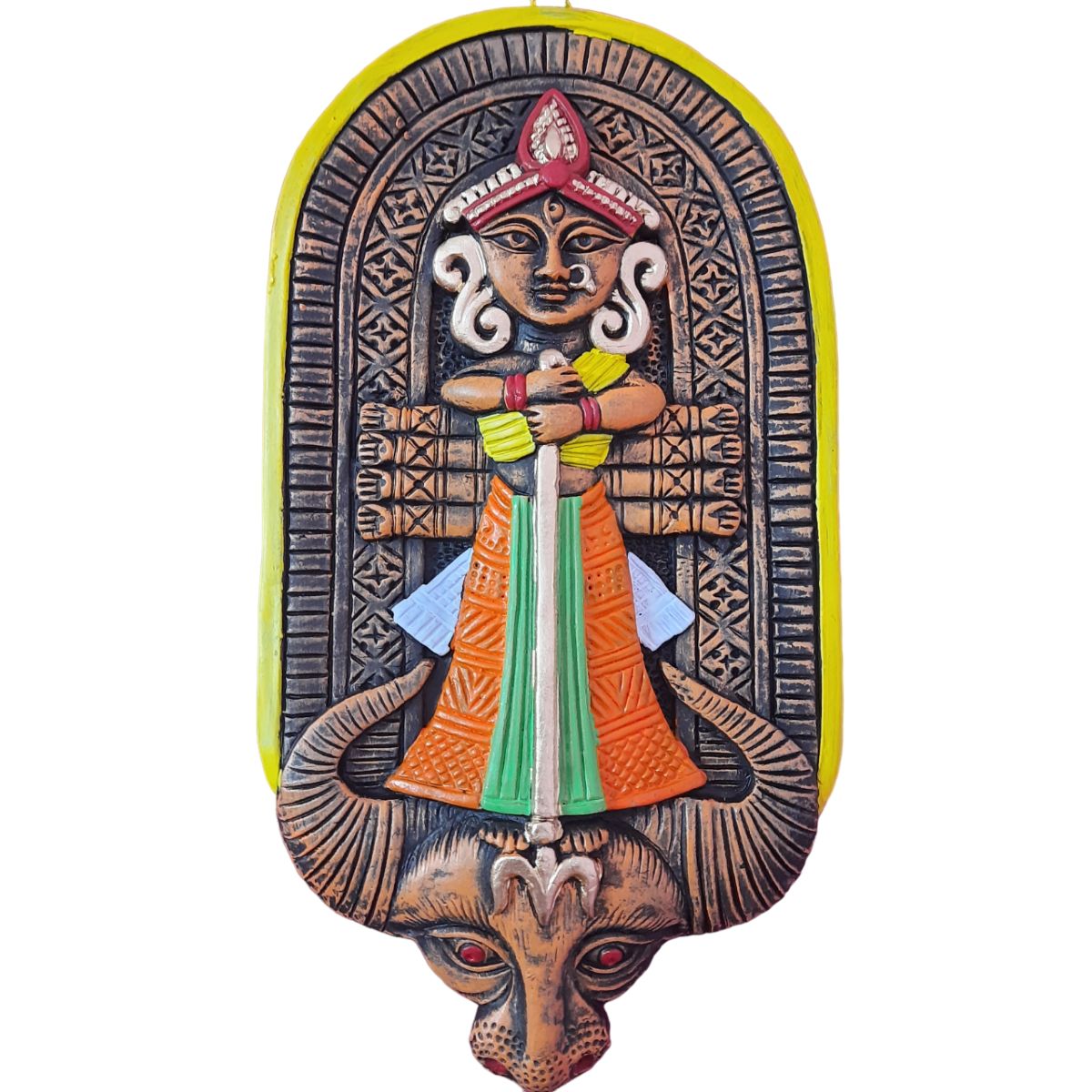 - Terracotta Handpainted Devi Durga as Slayer of Mahishasura (Mohishasur Mordini)