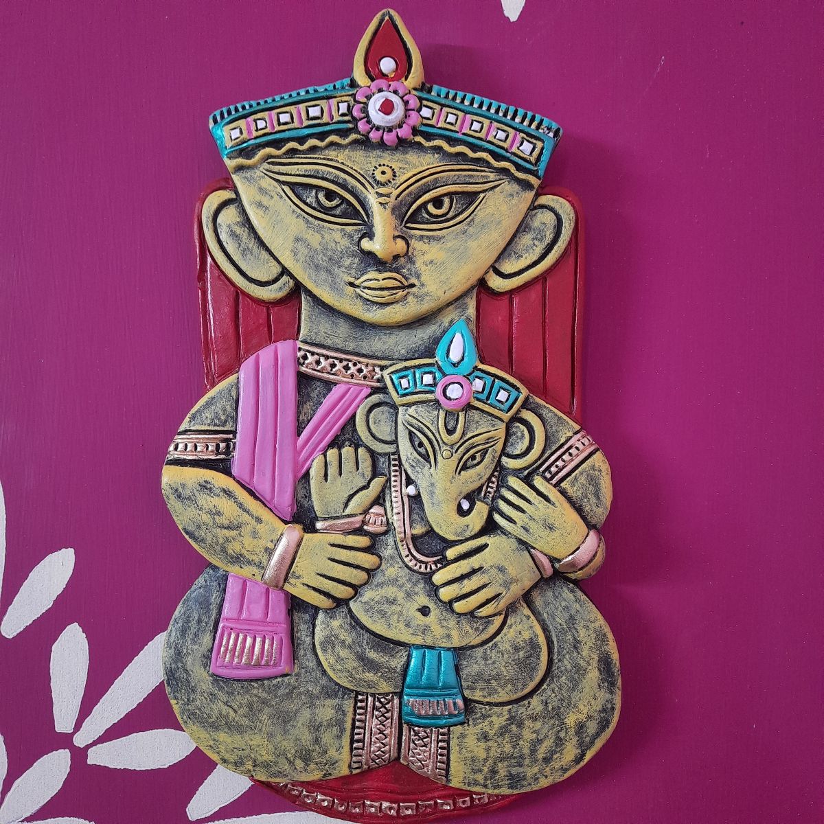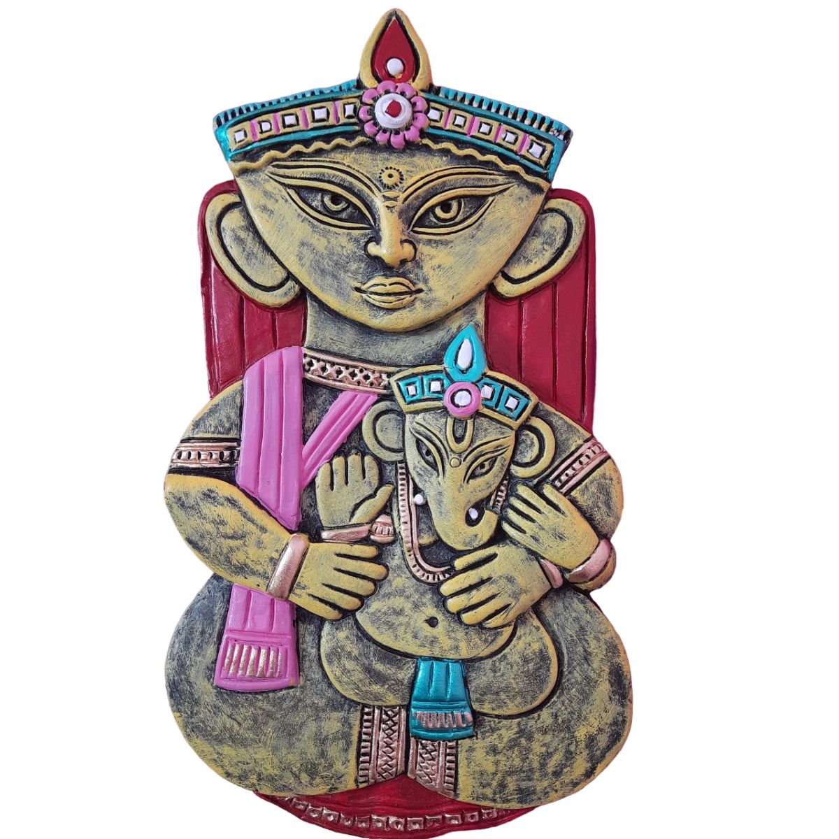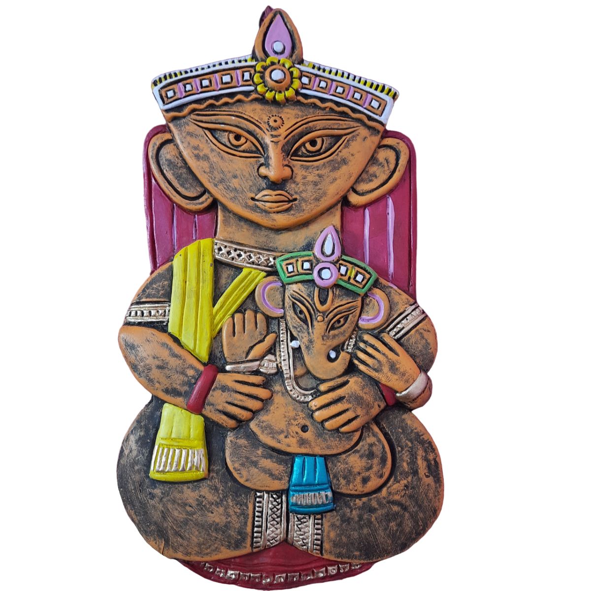 - Terracotta Handpainted Devi Durga symbolizes Mother (Ganesh Janani)