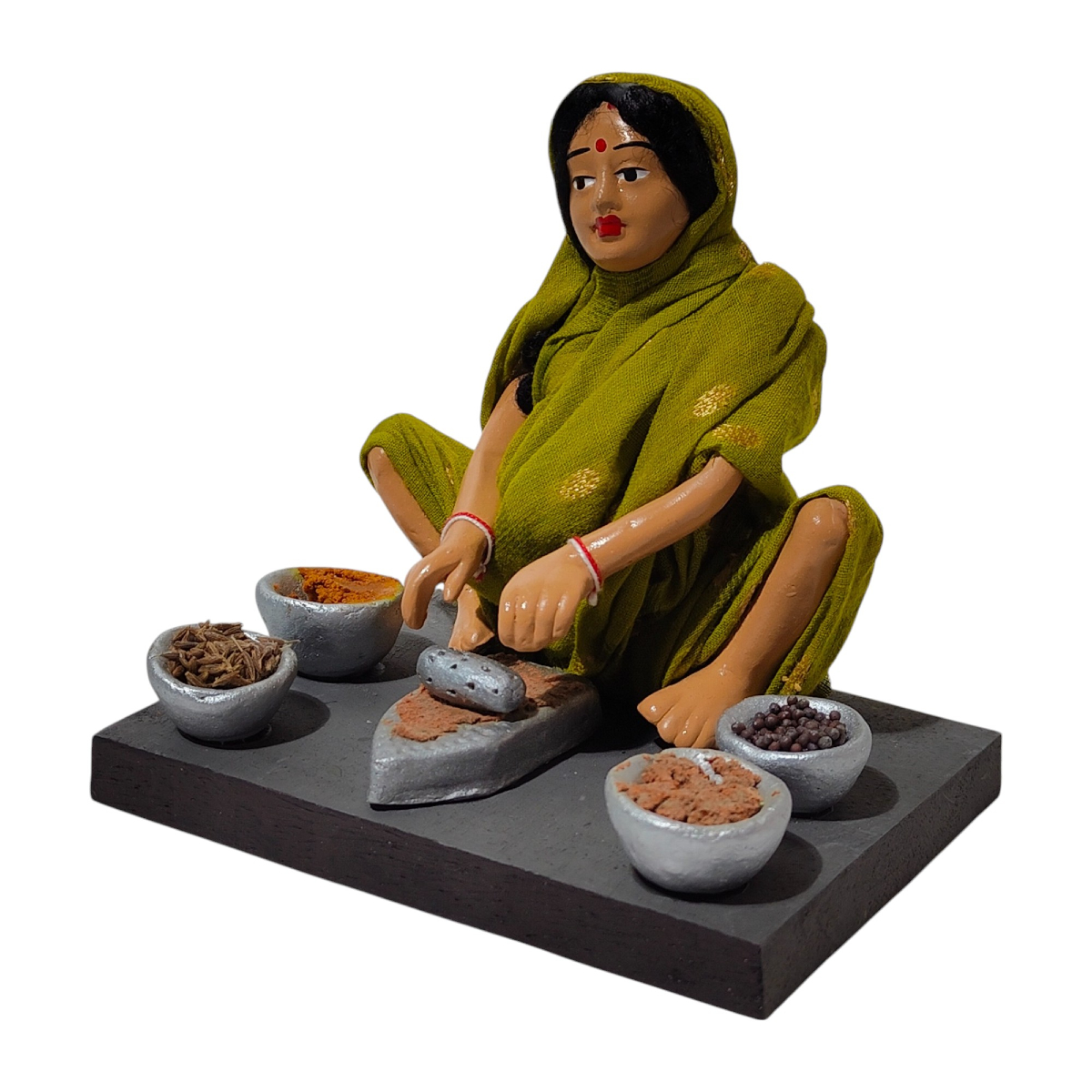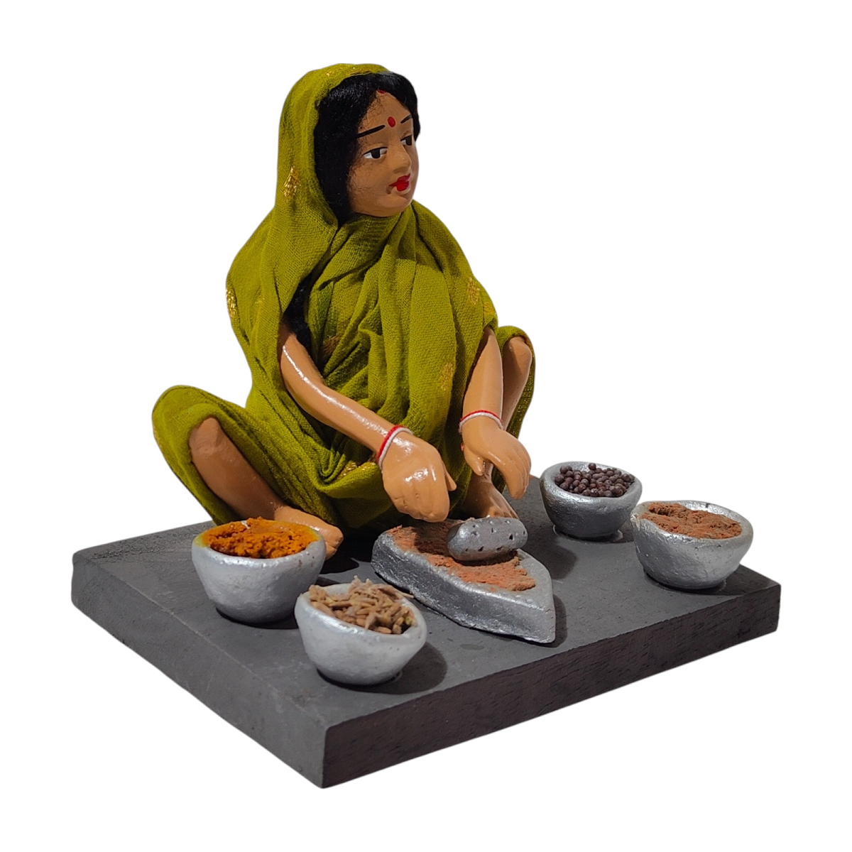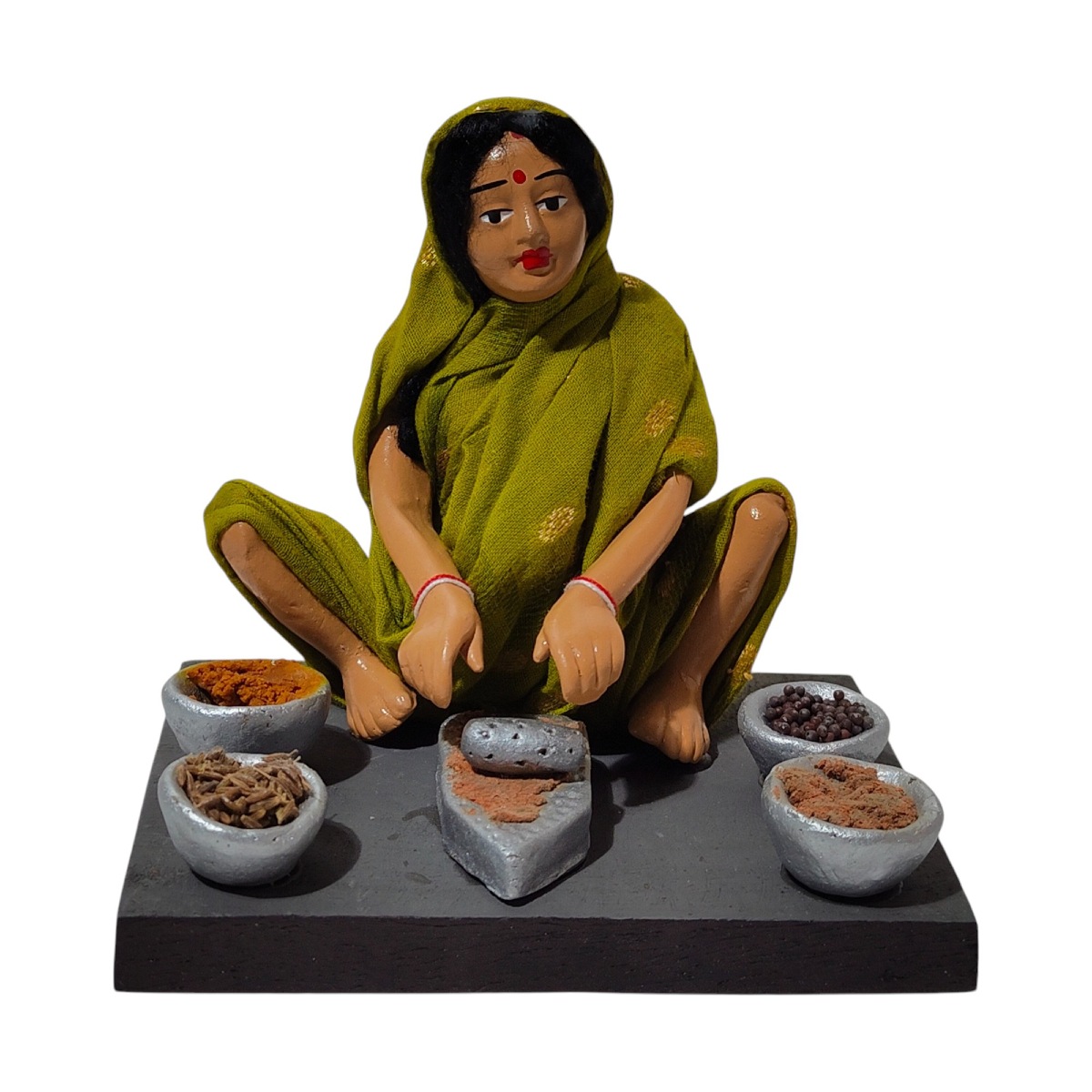 - Box Content : 1 Woman Grinding Spices Handmade Decorative Miniature Clay Figurine