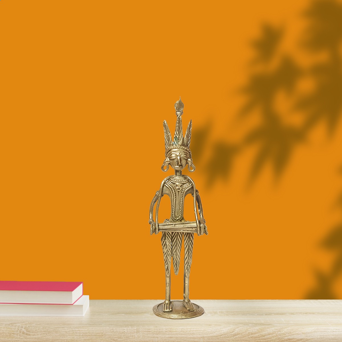 Tribal Musician Playing Madol Handmade Dhokra Figurine