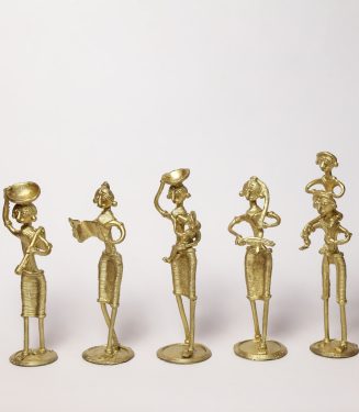 “Art of Integrity of life” Hand Crafted in Dhokra Art form Set of 5 Figures – 6 Inches
