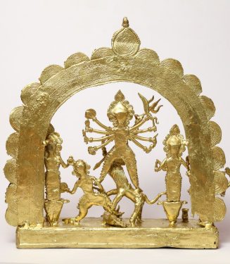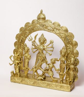 Dhokra Durga Family Figurine – “Goddess Durga with her children” – 9 Inches