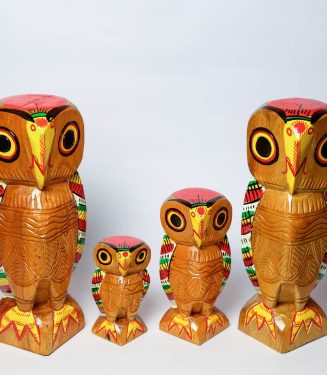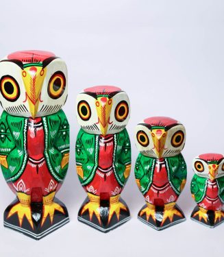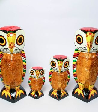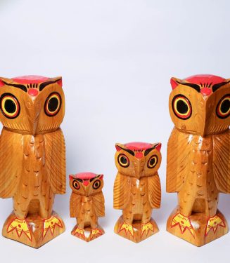 Night Bird Owl Family Wooden Handcurved Decorative Showpieces (Set of 4 Owls) – 10″-10″-6″-4″