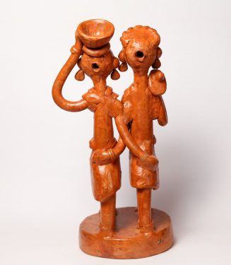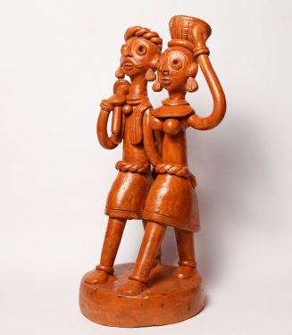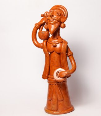 Tribal Lady with Oil Lamp in Terracotta Art From