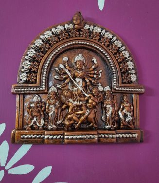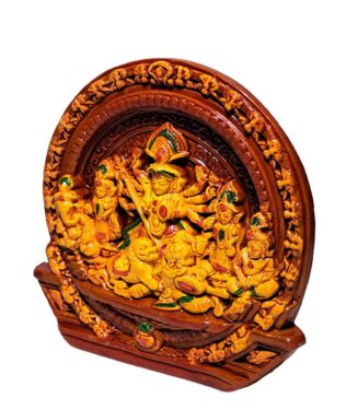 Terracotta Handpainted Maa Durga Family Wall Hanging in Copper Color