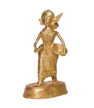 Folk Musician Playing Drum (Damama) Hand Crafted Dhokra Decorative Showpiece
