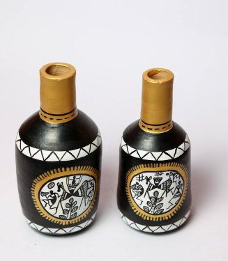 Warli Hand Painted “Coal Black Combo” Earthen Terracotta Vases (Set of 2 Vases)